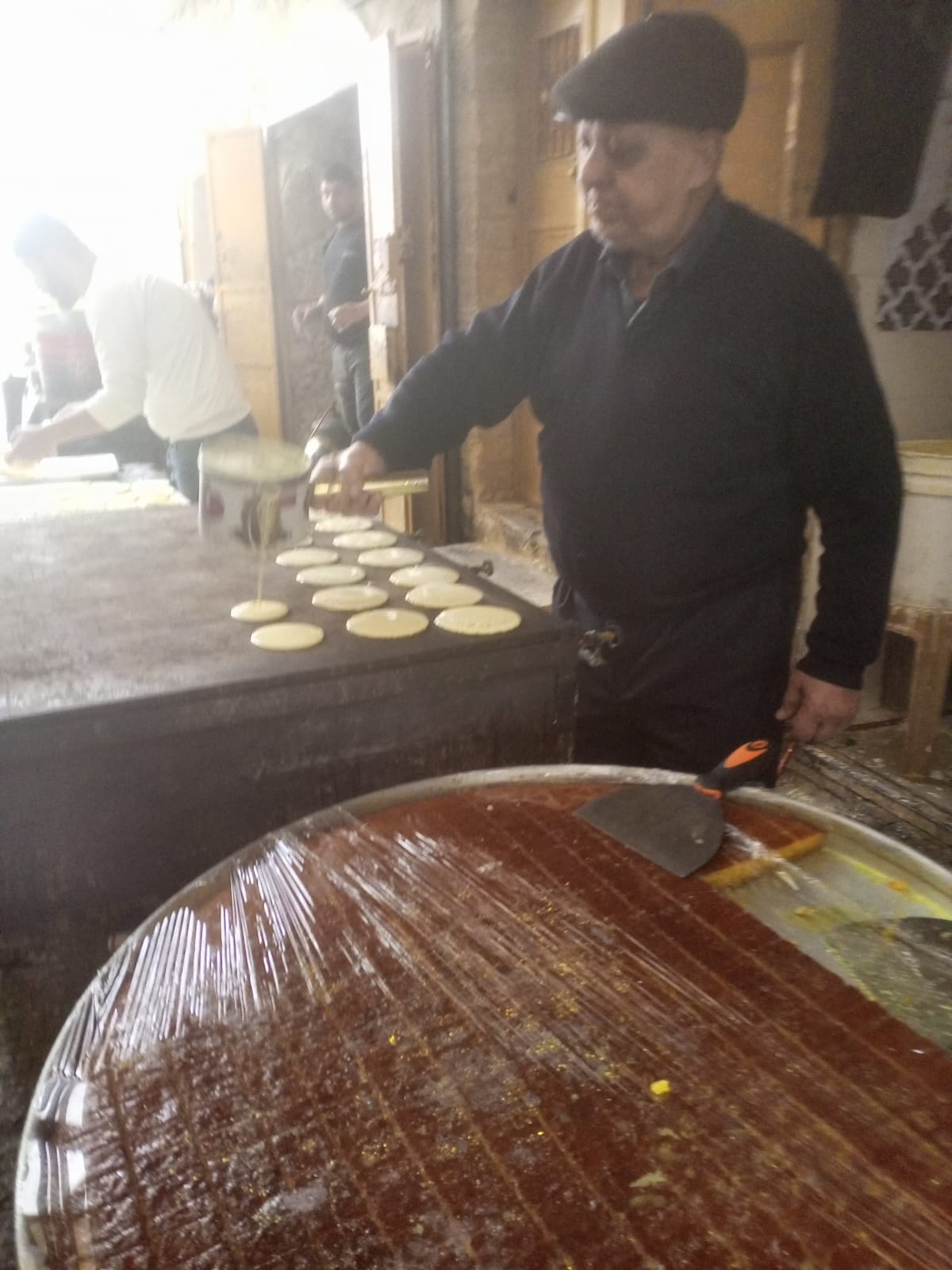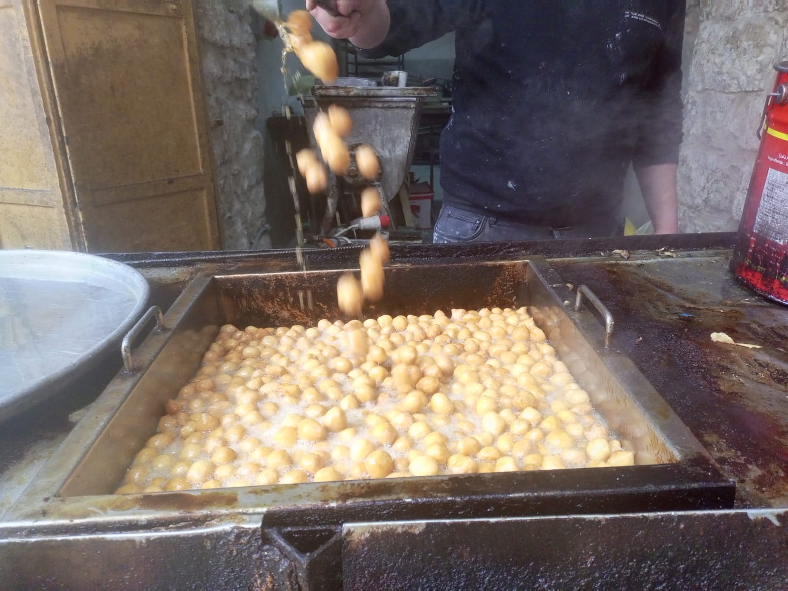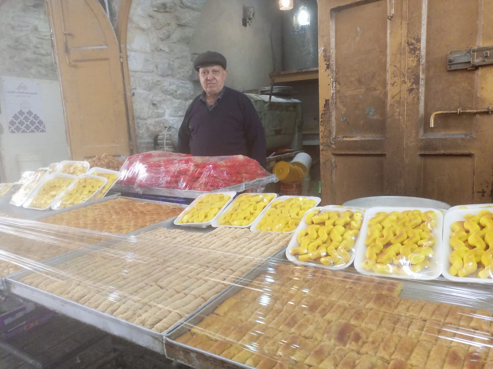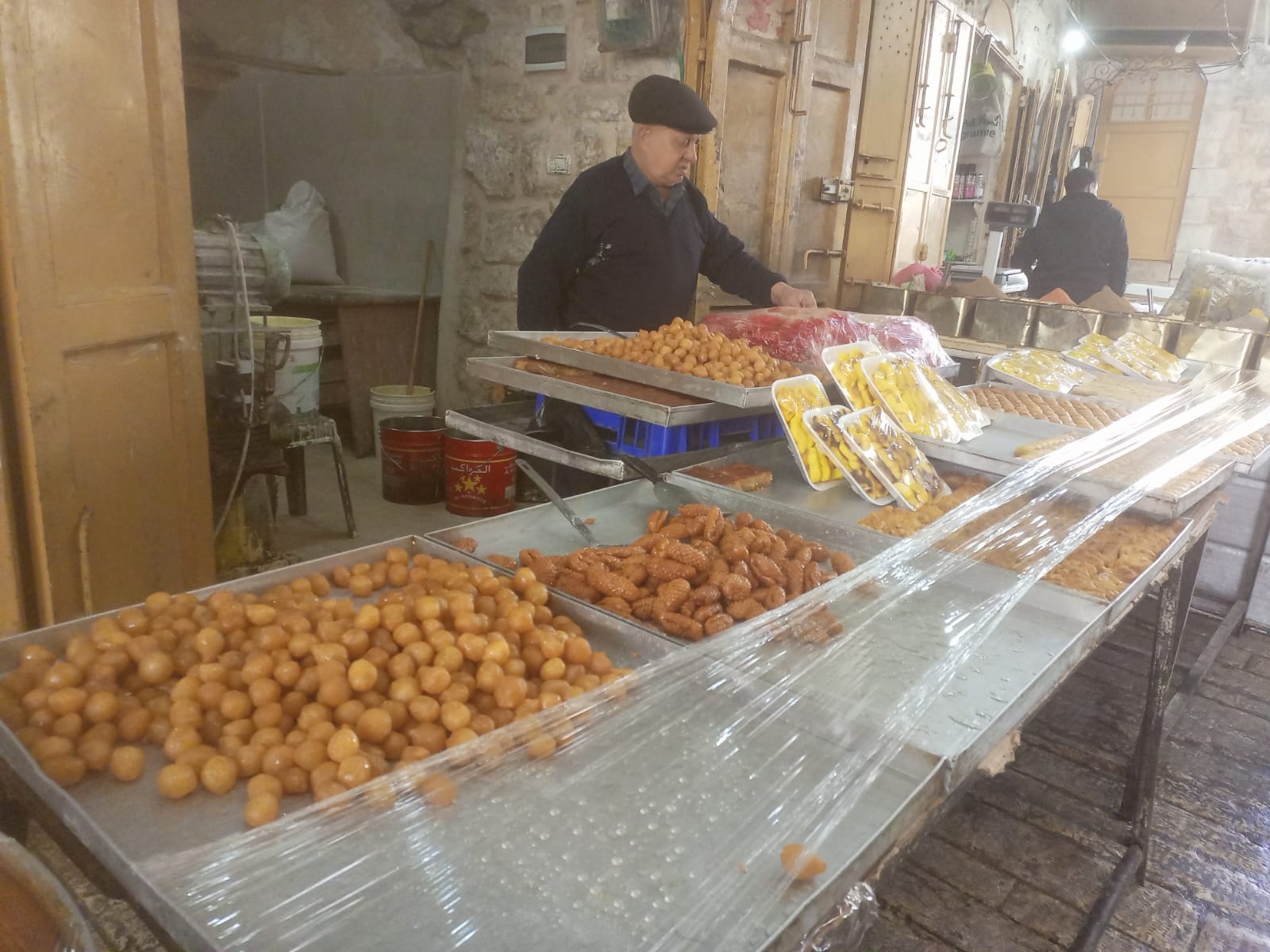 ففي البلدة العتيقة في مدينة الخليل مرورًا بمدخل سوق القصبة حتى الحرم الإبراهيميّ الشّريف، نرى الأحبال المضيئة، ومحالُّ الباعة تفتح أبوابها في إطار الاستعدادات للشّهر الفضيل، وهنا نجد أشهر محالّ الحلويات في البلدة العتيقة في الخليل للسّبعيني صبحي الشّوامرة، وهو متخصّص بالقطايف في رمضان، حيث يعمل في هذه المهنة منذ أن كان صبيًّا، ويصف المحلّ بأنّه المكان الوحيد الذي يتنفّس فيه، بقوله: “روحي معلّقة في هذا المكان”.