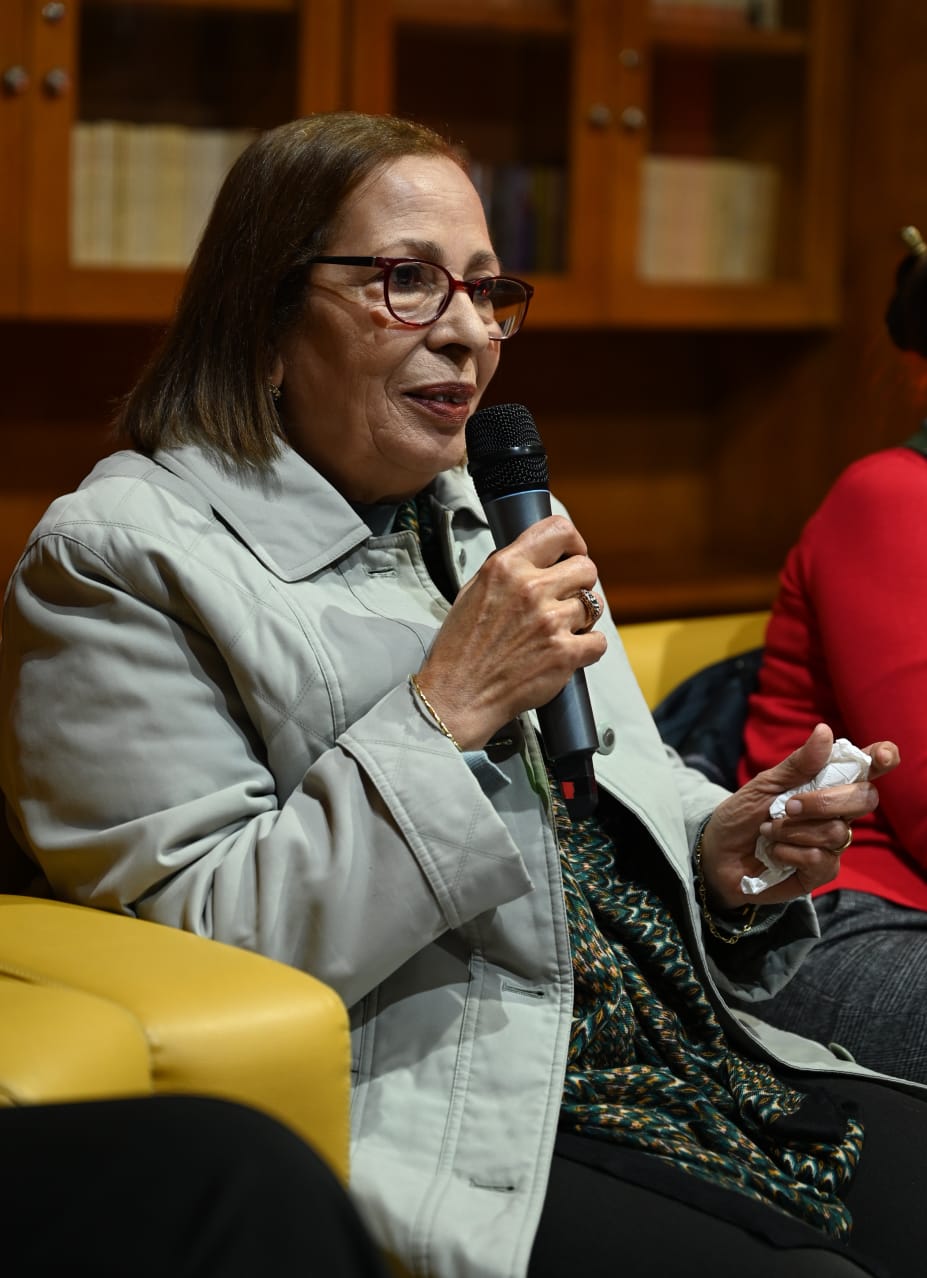 كما أثارت سؤالا جوهريا خلال النقاش: “هل يمكن الحديث عن مدرسة إخراجية نسوية في المسرح التونسي؟” وأوضحت أن البعض يرى أن هناك “حساسية نسوية” تميز بعض الأعمال المسرحية التي تخرجها النساء، سواء من حيث المواضيع المطروحة أو من حيث الأساليب السردية والبصرية المعتمدة.