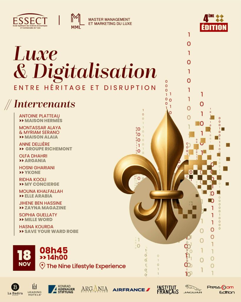 La 4ᵉ édition du colloque annuel du Master Professionnel « Management et Marketing du Luxe » de l’ESSEC Tunis a eu pour thème « Luxe et Digitalisation : entre héritage et disruption », et a réuni un panel prestigieux d’intervenants internationaux venus partager leur vision d’un secteur en pleine transformation.