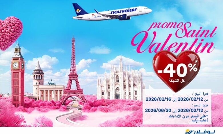 Nouvelair lance une offre promotionnelle exceptionnelle à l’occasion de la Saint-Valentin.